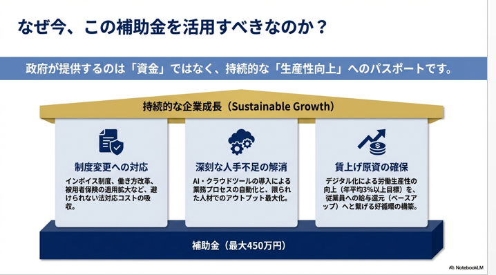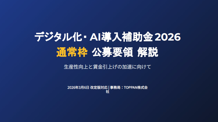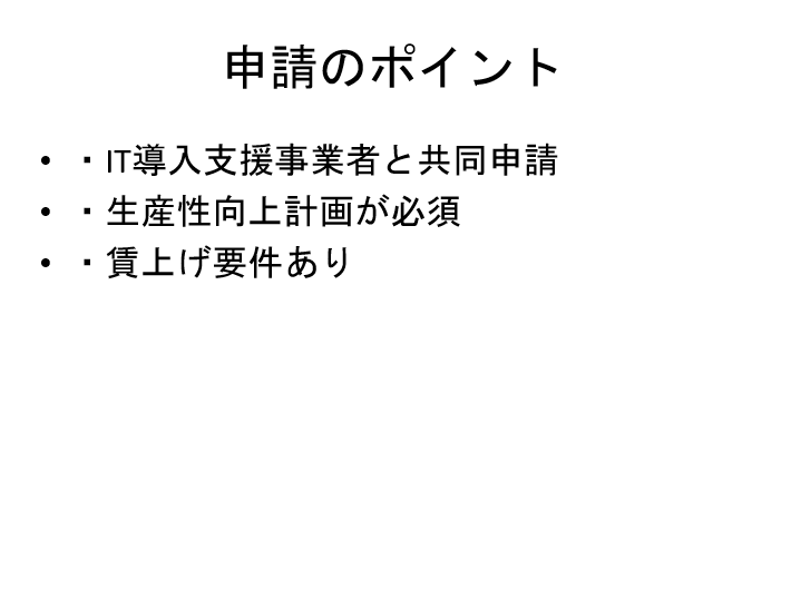 デジタル化・AI導入補助金の公募要領(以下)をスライドにまとめてもらいました。